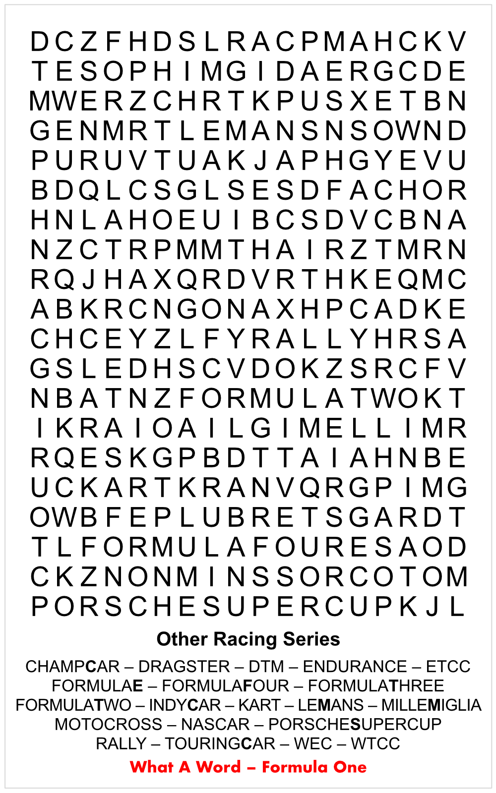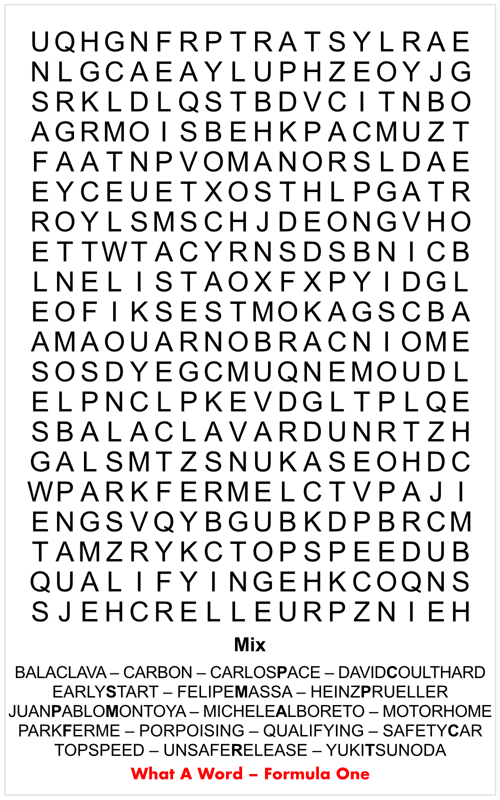 Grand Slam : Refers to winning the Le Mans 24 Hours, the Indianapolis 500, the Monaco Grand Prix and/or the Formula 1 World Championship. So far, only Graham Hill has succeeded in doing so.