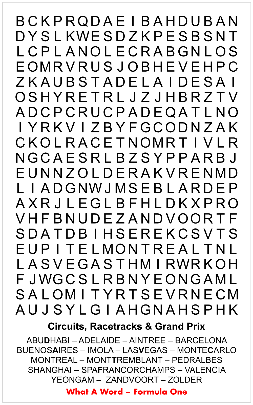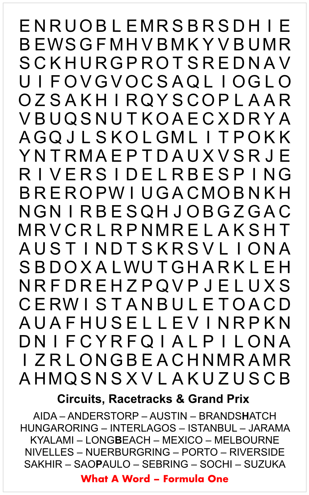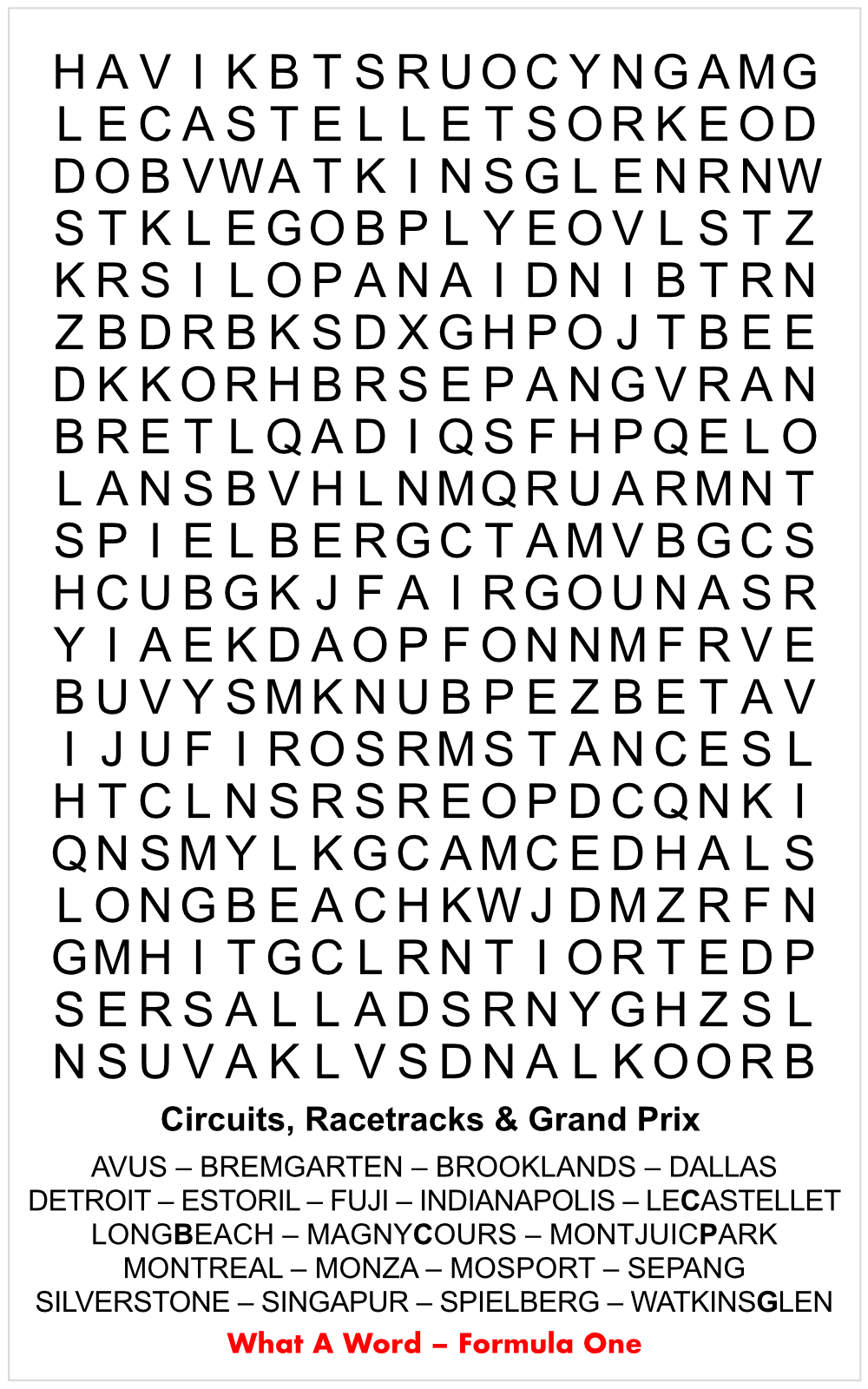 Interlagos (Autódromo José Carlos Pace) : The Brazilian race track, whose name means Between the Lakes, hosted its first regular Formula 1 race in 1973.