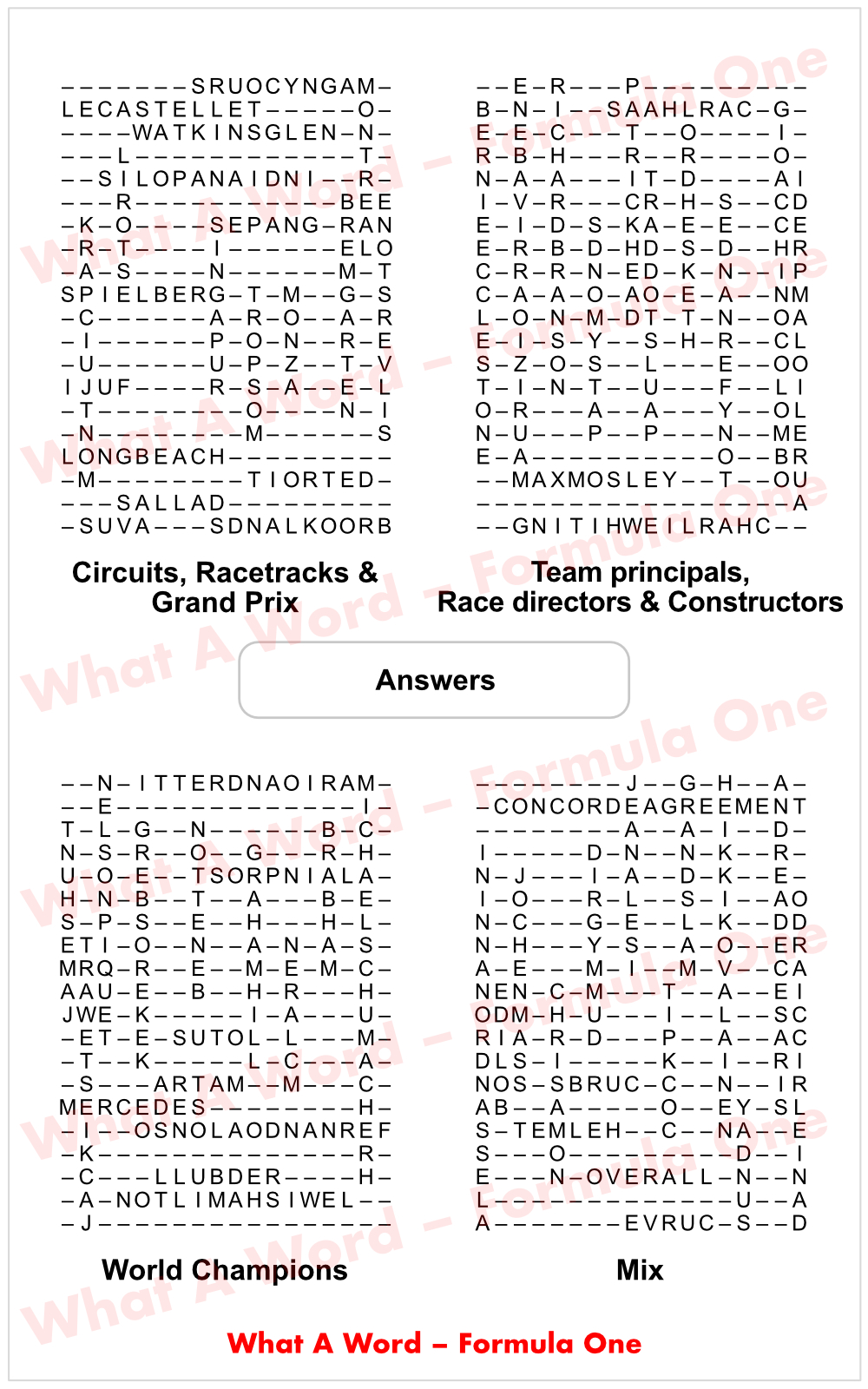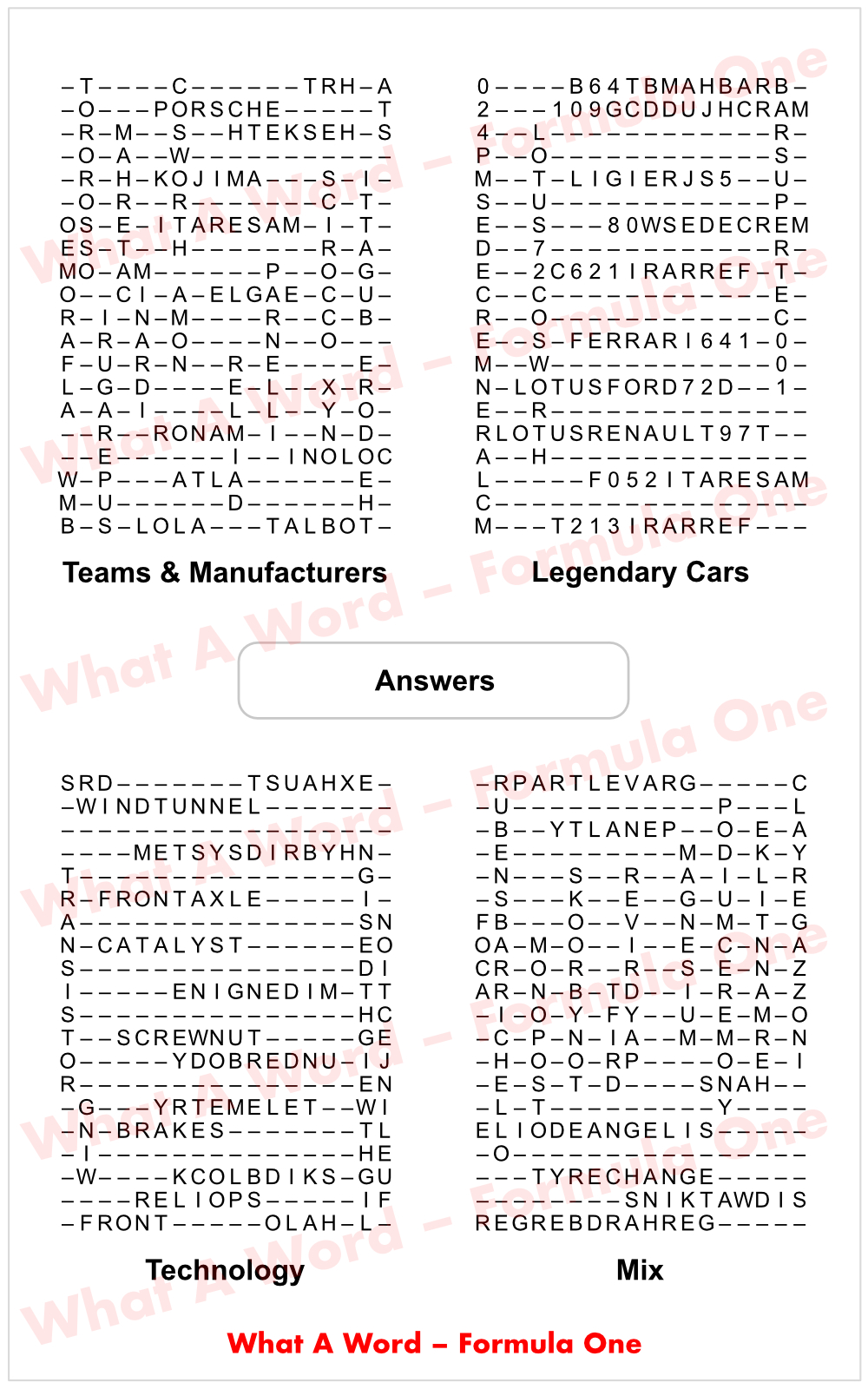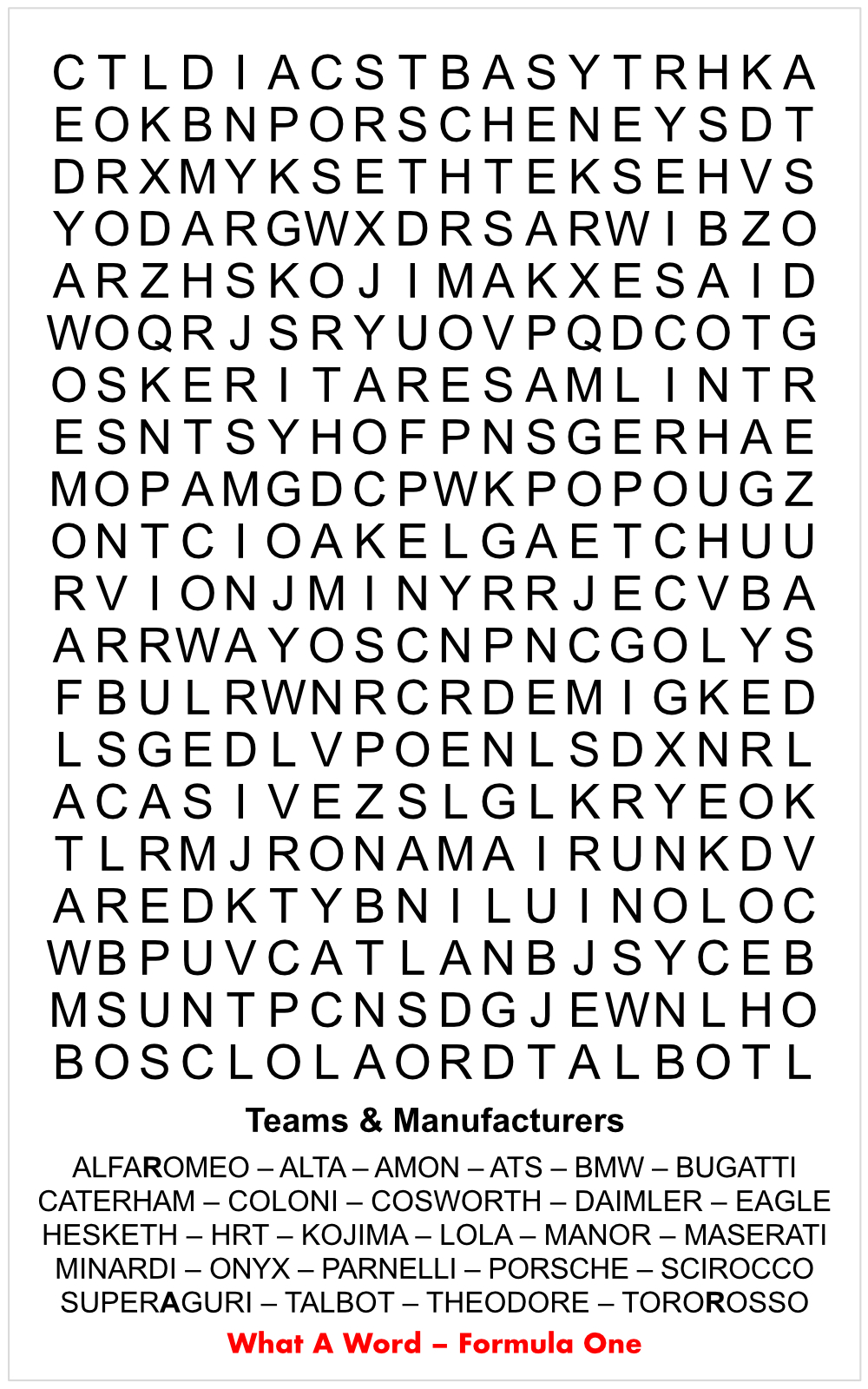 Lotus : Formula 1 Constructors World Champion 1963, 1965, 1968, 1970, 1972, 1973 and 1978.