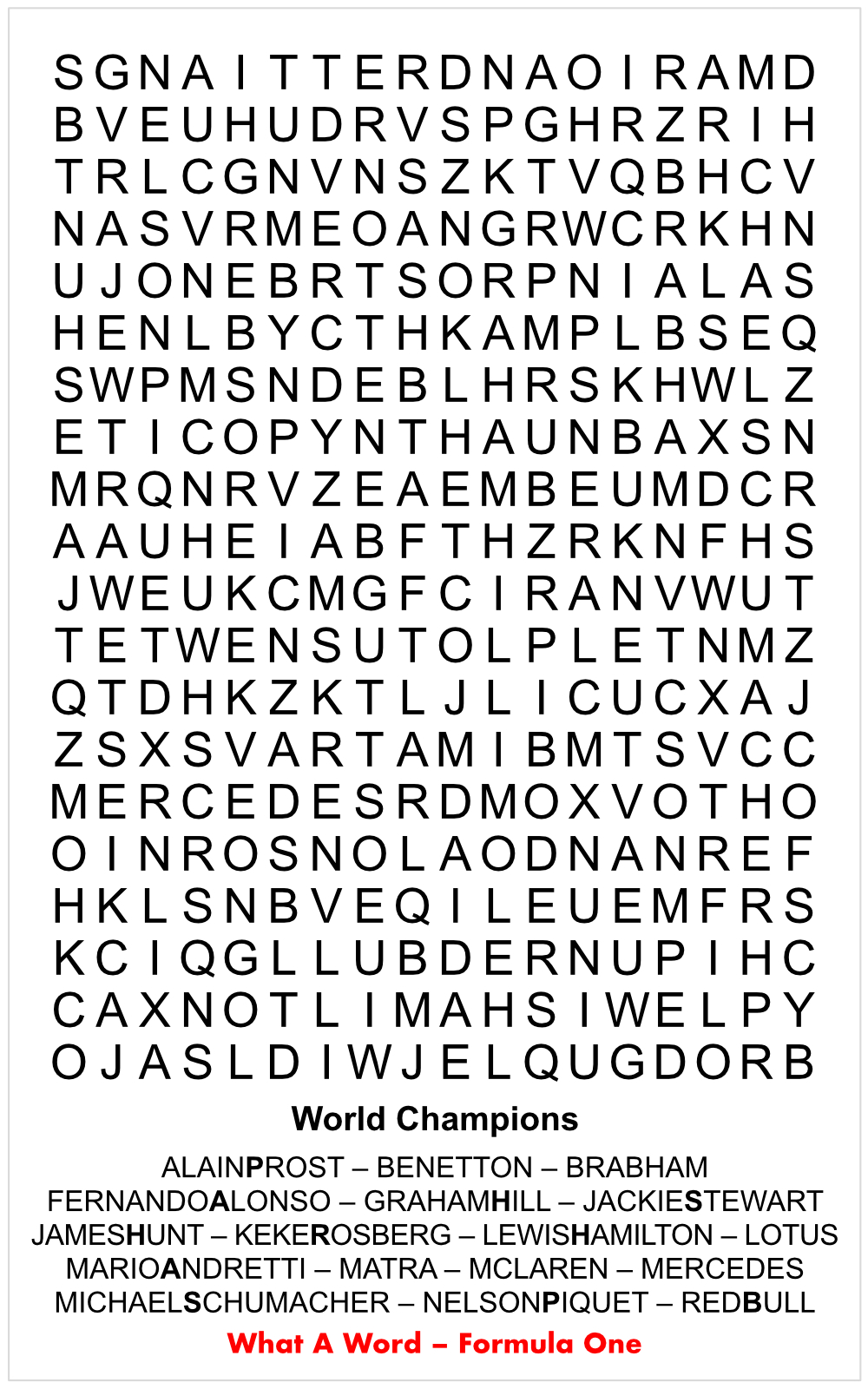 McLaren : Formula 1 Constructors World Champion 1974, 1984, 1985, 1988, 1989, 1990, 1991 and 1998.
